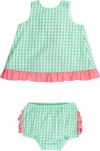 Signature ruffles sweeten this swingy top and matching bloomers set that will keep your little one cool and cute on warm days.