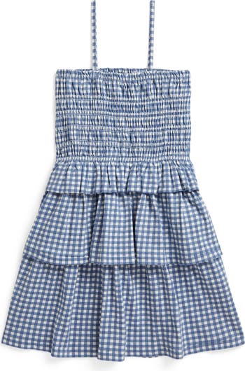 Made of crisp cotton, this tiered sundress is perfect for breezy days with its comfortable smocked bodice and fluttery tiered skirt.