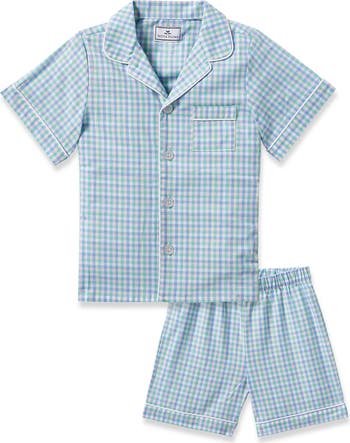 A fresh gingham check covers short pajamas cut from a cotton-blend twill that wicks moisture to keep your young one comfortable all night.