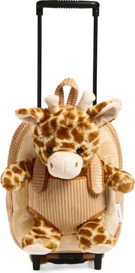 A cuddly giraffe goes along for the ride on a plush wear-or-wheel backpack bag perfect for traveling near or far. When your kiddo gets to their destination, the soft stuffed animal can be detached and is all ready to snuggle and play.