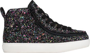 This glittery sneaker was designed with AFOs in mind with additional room in key areas and features removable insoles for depth adjustability. A clever wraparound zipper offer easy-on/off.