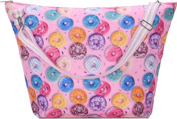 Your little sweet tooth will go nuts for this weekend-ready tote that's printed with delectable donuts.