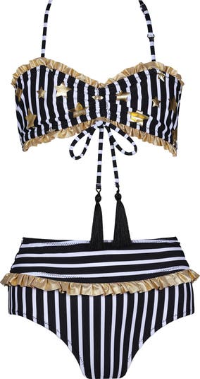 Kids' Gold Star Print Stripe Two Piece Bikini