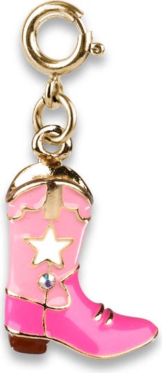 Light up any line dance (and bracelet) with this sparkling pink cowboy-boot charm finished in glossy pink enamel.