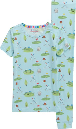 Little ones will love the cute golf print and soft fabric of these short-sleeve PJs featuring a SewSafe™ magnetic closure at the shoulder for easy on and off.