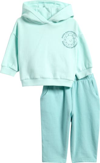 Your little one will love the cozy feel and cheery slogan on this cozy cotton-forward hoodie and sweatpants set dyed in soft tonal hues.