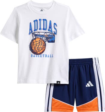 A basketball-inspired graphic brings sporty flair to this cotton jersey T-shirt teamed with color-block shorts for an easy set made for active kiddos on the move.