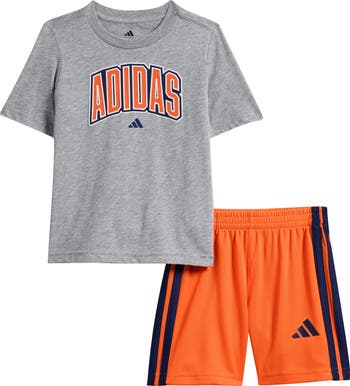 A bold logo graphic energizes this cotton-blend T-shirt paired with matching shorts for a sporty set that takes your kiddo from playtime to practice.