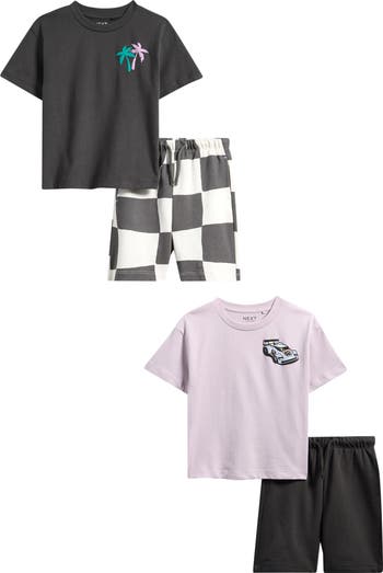 Build out your tiny trendsetter's weekend wardrobe with this assorted set of all-cotton graphic T-shirts complete with two pairs of coordinating drawstring shorts.