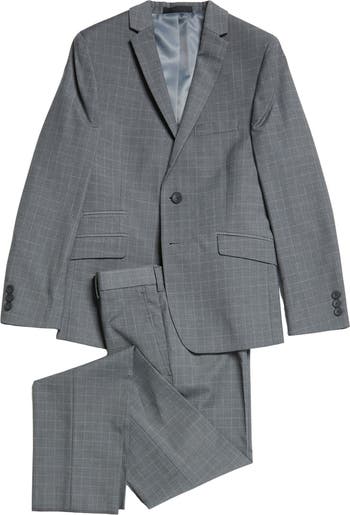 Silky-smooth satin lines the inside of the jacket of this handsome suit made with a touch of stretch to keep your kiddo comfy.