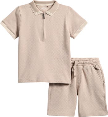Give your child a monochromatic look that's both comfy and smart with a half-zip polo shirt paired with coordinating shorts.