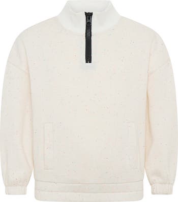 Soft and stretchy cotton will keep your child comfy in a half-zip pullover designed with a speckling of color.