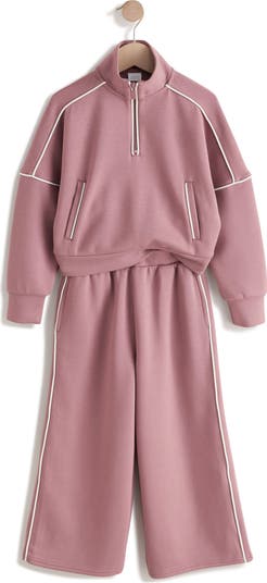 Ideal for both workouts and hangouts, this slouchy piped set pairs a half-zip sweatshirt with wide-leg sweatpants for a fashion-forward look that's also super comfy.