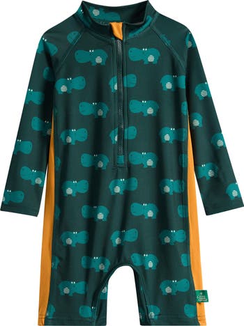 Kids' Happy Hippos UPF 50+ Long Sleeve One-Piece Rashguard Swimsuit
