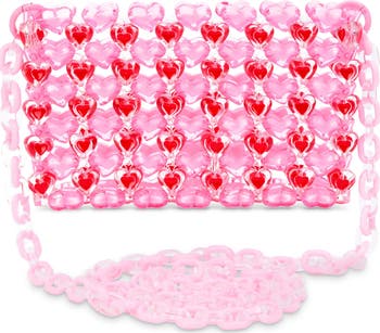 Pretty pink-and-red hearts make up this translucent crossbody that perfectly stashes small essentials.