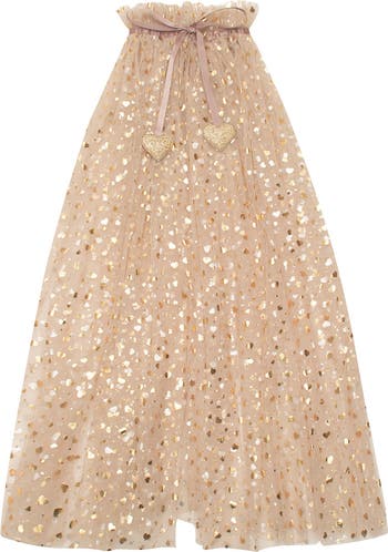 Your kid will be the star of the party in this frothy cape made from layers of frothy tulle and adorned with metallic gold hearts.
