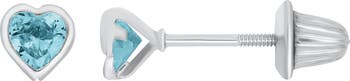 Your little one's first expression of personal style starts with these heart stud earrings shaped from sterling silver and centered with sparkly birthstone-colored cubic zirconia.