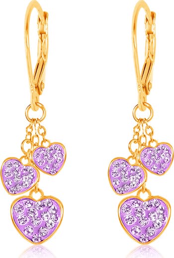 A trio of sparkling hearts dangle from high-shine drop earrings that will bring instant charm to your child's look.