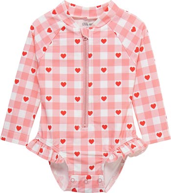 Ruffle-trimmed details lend playful flair to this quick-drying raglan-sleeve swimsuit made with built-in UPF 50+ sun protection.