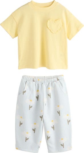 Keep your budding trendsetter comfy and cute in this heart pocket T-shirt and printed pants set made from pure cotton.