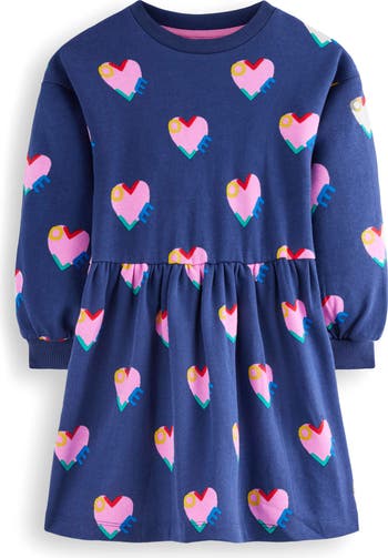 A sweet sentiment is spelled out by hearts sprinkled on a cotton sweatshirt dress that's fashioned in a slightly slouchy oh-so-comfy profile.