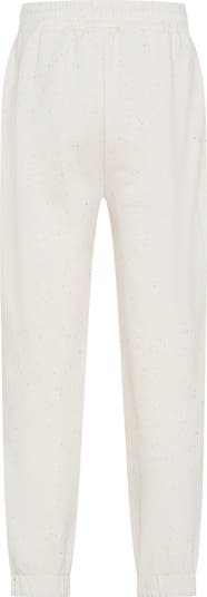Pastel speckles are sprinkled across these ultra-cozy sweatpants embroidered with hearts.