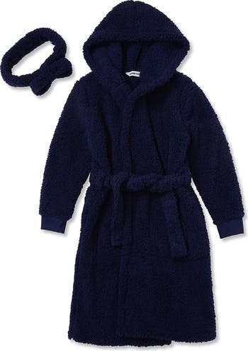 Crafted in soft plush fabric for comfort and warmth, this robe features snuggly pockets to keep hands toasty, plus a matching headband with a bow detail to keep her hair in place. It's the perfect duo whether she's resting or getting ready for the day.