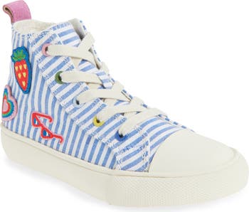 Summery appliqués add an extra splash of charm to this striped canvas sneaker that's sure to be a playground fave.