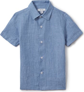 Keep them polished in this collared shirt made from crisp lightweight linen and updated with abbreviated sleeves.