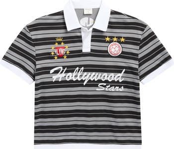 Move them straight to varsity in this pure-cotton polo cut from pure cotton and made in a sporty soccer theme.