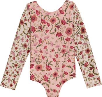 Long sleeves and a low back will have them feeling like they're on vacation in this one-piece rashguard swimsuit made with built-in sun protection.