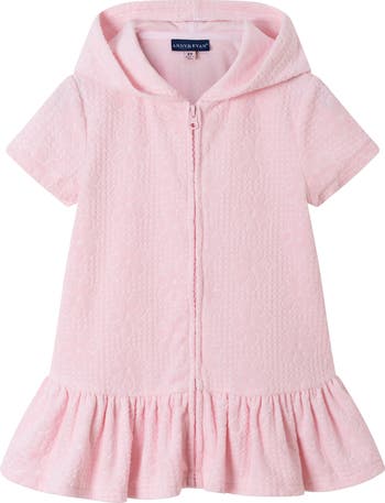They'll love to lounge by the water in this French-terry cover-up dress featuring a tonal jacquard pattern and a sun-blocking hood.
