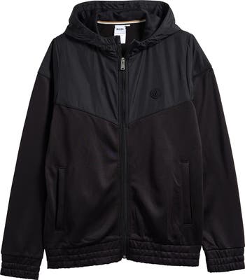 Topped in crisp nylon from the hood to the chest, this kid-size jacket features a body of soft fleece that brings warmth without bulk to any cool-weather day. It's great choice for lightweight comfort, and it layers easily into cold-weather looks when the temperatures start to drop.