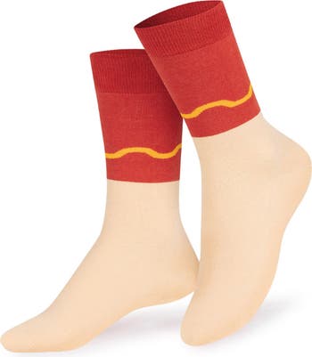 Give their feet a tasty treat with these kid-sized crew socks rolled up like a hotdog in a themed gift box.
