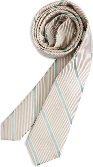 Angled stripes and traditional colors keep your child looking dapper at any event in this tie that's long enough to keep up with growth spurts. Made of durable polyester and soft silk, it holds a smart dimple and brings a touch of polish to any formal or semiformal occasion.