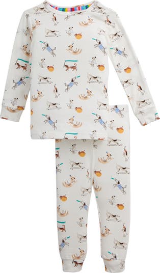 A playful puppy pattern adds plenty of whimsy to these snug and cozy two-piece pajamas featuring a top with a fuss-free magnetic closure.