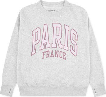 Cotton-rich fleece keeps kids comfy from the classroom to the couch in this heathered crewneck sweatshirt with varsity-style embroidery that celebrates the City of Lights.
