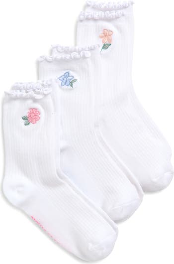 They'll love the lettuce-edge detailing along the cuff of these stretchy crew socks.