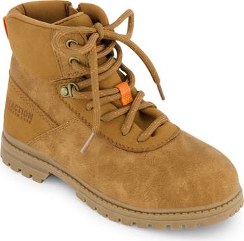 A side zipper delivers quick entry into this fashion-forward hiking boot with a padded footbed so little feet can ride easy.