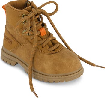 A side zipper delivers quick entry into this fashion-forward hiking boot with a padded footbed so little feet can ride easy.