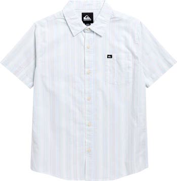 Faded stripes lend a chill vibe to this kid-sized button-up shirt made of breezy cotton.