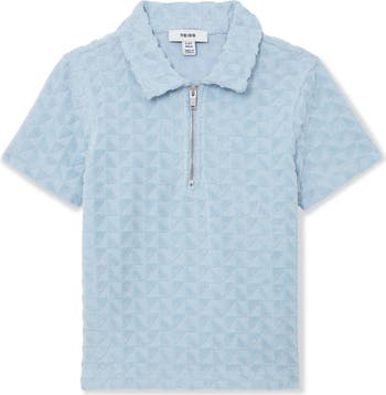 A zippered placket adds a touch of modern flair to this textured terry polo made of a supersoft cotton blend that'll keep your kiddo feeling comfortable.