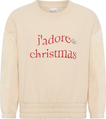 Add some cozy joie de vivre to your kid's holidays with this cotton-blend sweatshirt made with fuzzy fleece on the sleeves and a declaration of love for Christmas cheer. It features built-in stretch for comfort and elastic in the cuffs and hem to keep out the cold all season long.