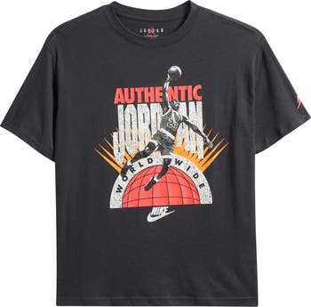 Vintage-effect Jumpman iconography is splashed across the front of this kid-sized graphic T-shirt cut from a soft cotton blend.