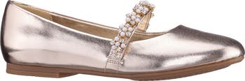 Your little one will feel extrafancy at their next special event in this metallic flat topped with a sparkly, embellished strap.