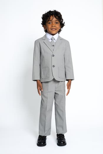 - 5-Piece Set Includes: jacket, pants, vest, shirt, and long tie