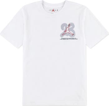 Soaring Jumpman logos and tagged jersey details bring big Jordan energy to a T-shirt made for kids who like to shoot and score in the comfort of breathable cotton-blend jersey. Perfect for playtime, downtime and every time in between, it's a great choice for any active wardrobe.