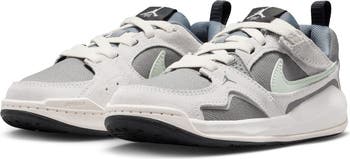 Iconic details from historic Air Jordans score major post-game points on this kid-size sneaker that fuses the best of the past with the modern comfort your kid's playtime and downtime demand. Leather and canvas keep the upper durable and ready for anything, while the easy-on/stay-on lacing ensures every step stays confidently grounded.