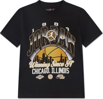 Championship graphics bring out greatness on this short-sleeve T-shirt cut from a comfy cotton blend and made for kids who want to be like Mike.