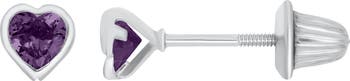 Your little one's first expression of personal style starts with these heart stud earrings shaped from sterling silver and centered with sparkly birthstone-colored cubic zirconia.